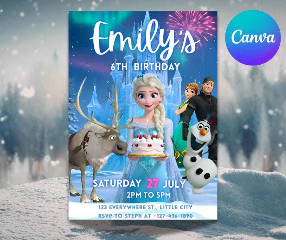Frozen Birthday Invitation | Editable Canva Template | Birthday Invitation | Printable Digital Invitation