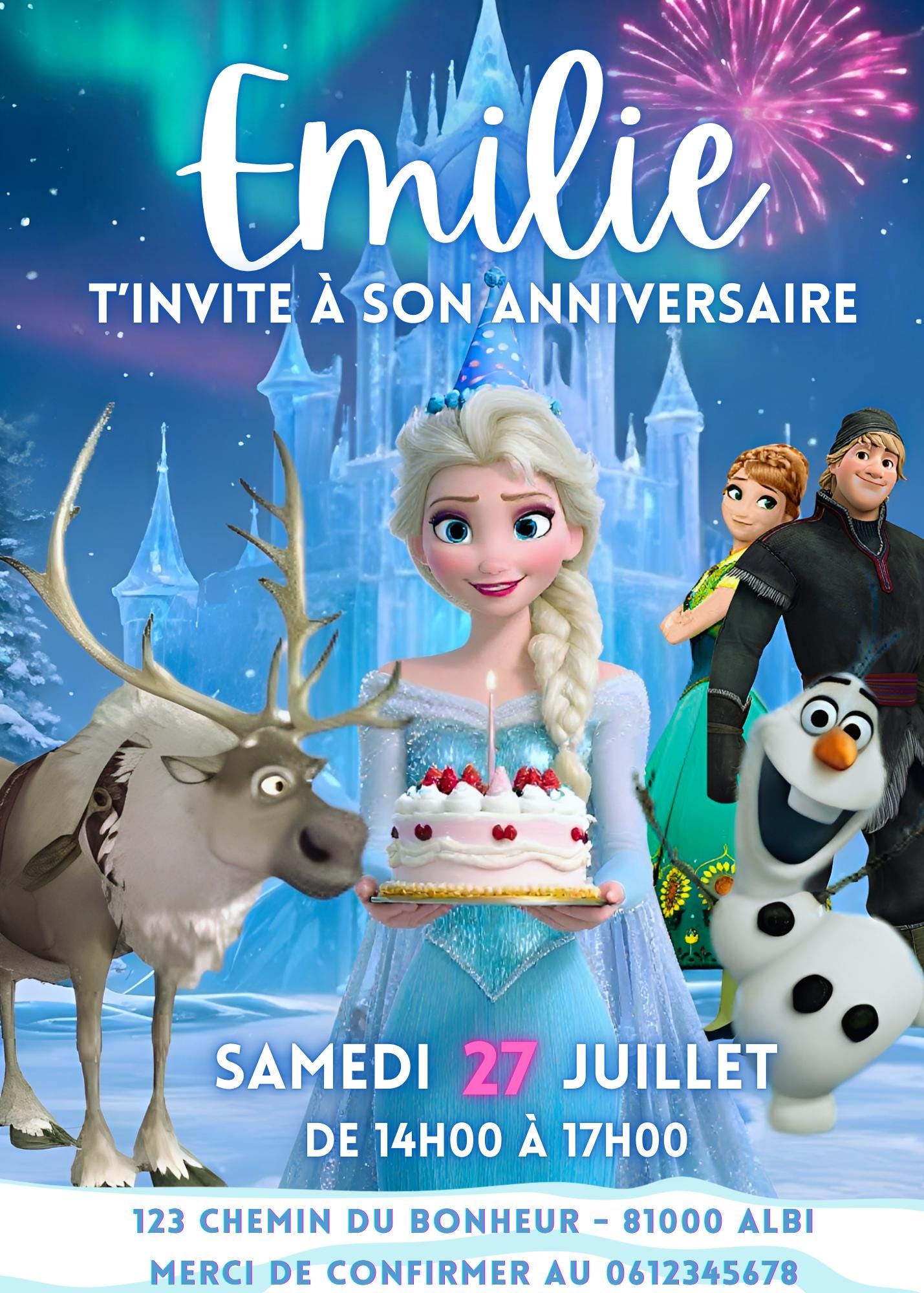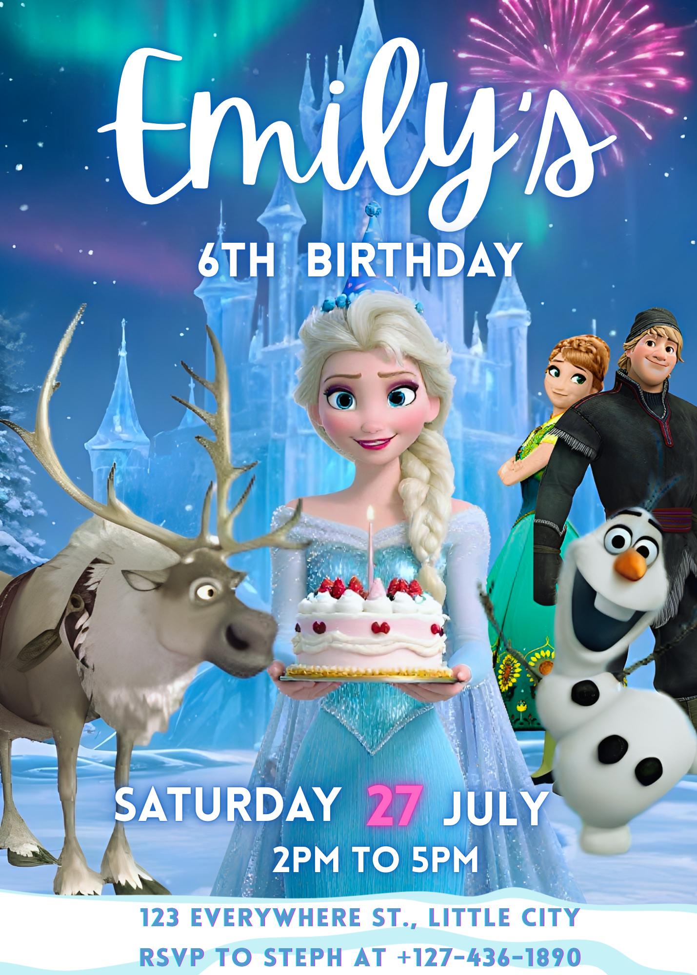 Make your child's birthday party unforgettable with this Frozen-inspired invitation. Organize an unforgettable celebration with this beautiful birthday invitation inspired by a magical winter wonderland ❄️